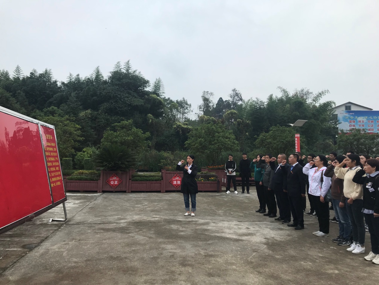 参观结束后,全体人员来到息烽集中营遗址广场,缅怀革命先烈,在烈士雕像前唱响国歌,为烈士雕像敬献花篮,并面对党旗庄严宣誓,在党办主任李晓艳带领下,全体人员重温入党誓词,铿锵有力的誓词震撼和感染了在场每一位人员。