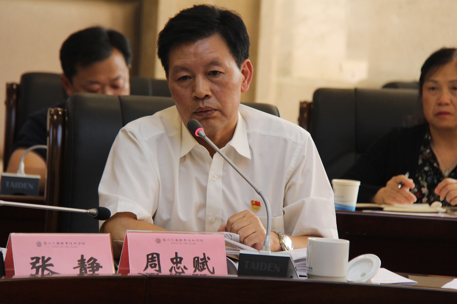 张静要求全体党员干部要更加坚定理想信念,弘扬伟大革命精神,把努力教书育人、立德树人的事干好;要更加注重理论和实践相结合,积极围绕申报“中特高”这一目标任务,深入贯彻落实《国家职业教育改革实施方案》和中国特色高水平高职学校和专业建设计划,加快推进学习改革发展;要加强理想信念教育阵地建设,发挥好学院集群式“场馆文化”宣传教育的作用,发挥“隐性课程”传承社会主义核心价值观的重要作用,进一步加强学生理想信念、爱党爱国教育,让广大学生坚定理想信念,永远跟党走。