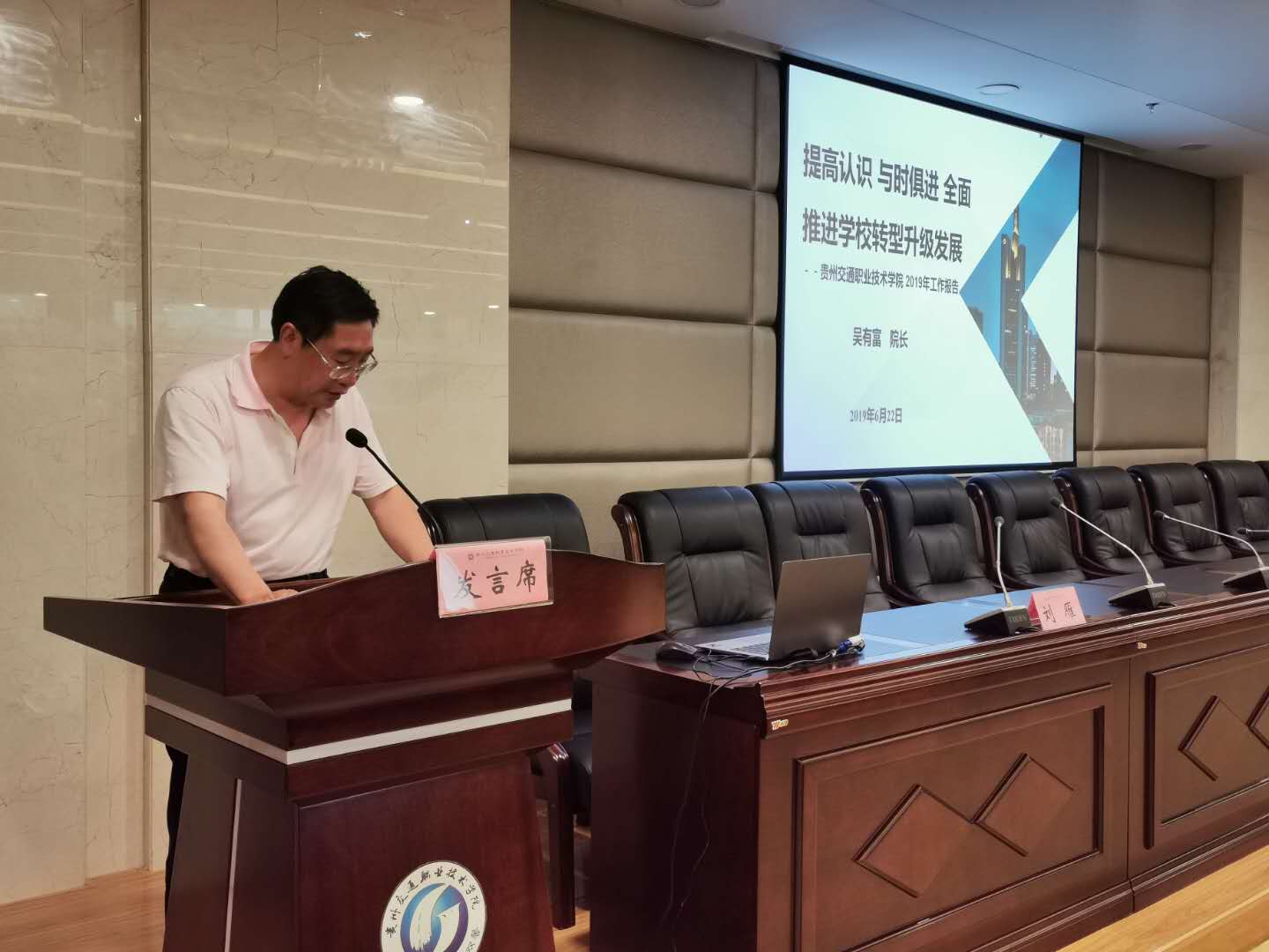 6月22日,中国公路运输工会贵州交通职业技术学院委员会第三届教职工代表大会第八次会议在清镇校区胜利召开,90余名教职工代表齐聚一堂,共商学院发展大计。会议由学院党委副书记刘雁主持。