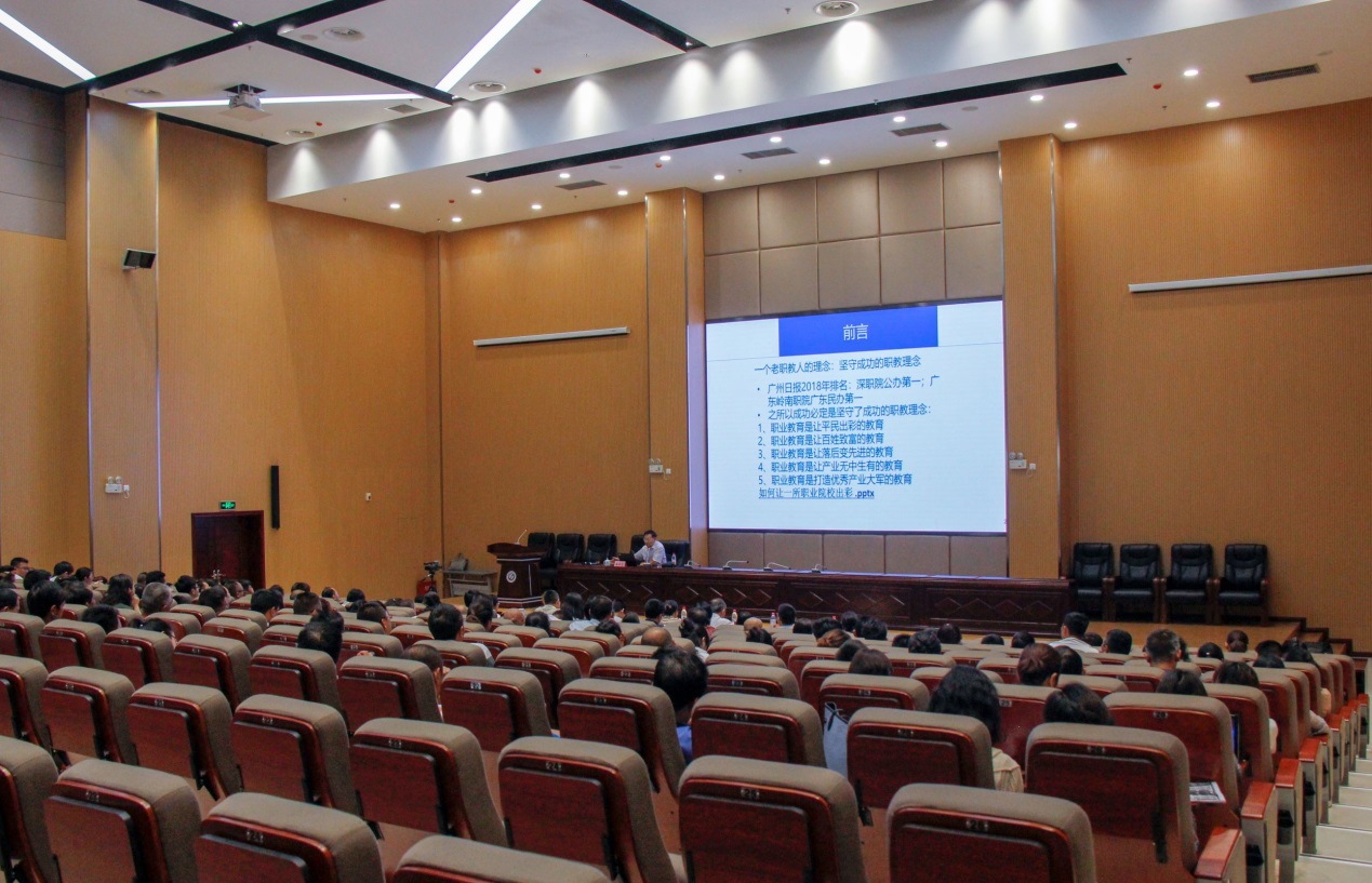 俞教授以《大力发展新职教:推动高职院校高质量发展的新思路》为题,从认真学习贯彻落实职教20条是当前优质校建设的重中之重、发展新职教是当前优质校建设的新思路、职业教育转型发展是当前优质校建设的重大任务等几个方面详细阐述了当前职业教育面临的新形势和新挑战。俞教授通过丰富的案例和详实的数据告诉老师们,当前技术背景正发生巨大变化,处在以“云物大智”技术为标志的第四次工业革命前沿,原有的劳动岗位、内容、标准、对体力智力的要求都发生了很大的改变。具体到交职院,就是要落实好新职教对于培养规格、院校定位、专业顶层设计、校企合作形式、实践教学基地、课程内容和考核标准、师资队伍建设、职业素质教育与养成等方面的要求;要勇于改革创新,面向现代化建设主战场,将优质校建设与推动新旧动能转换结合起来,大力发展与新技术、新产业、新任务、新目标、新要求紧密联系的技术技能,创建全国交通职院的新品牌,做新职教的高手、推手和旗手。