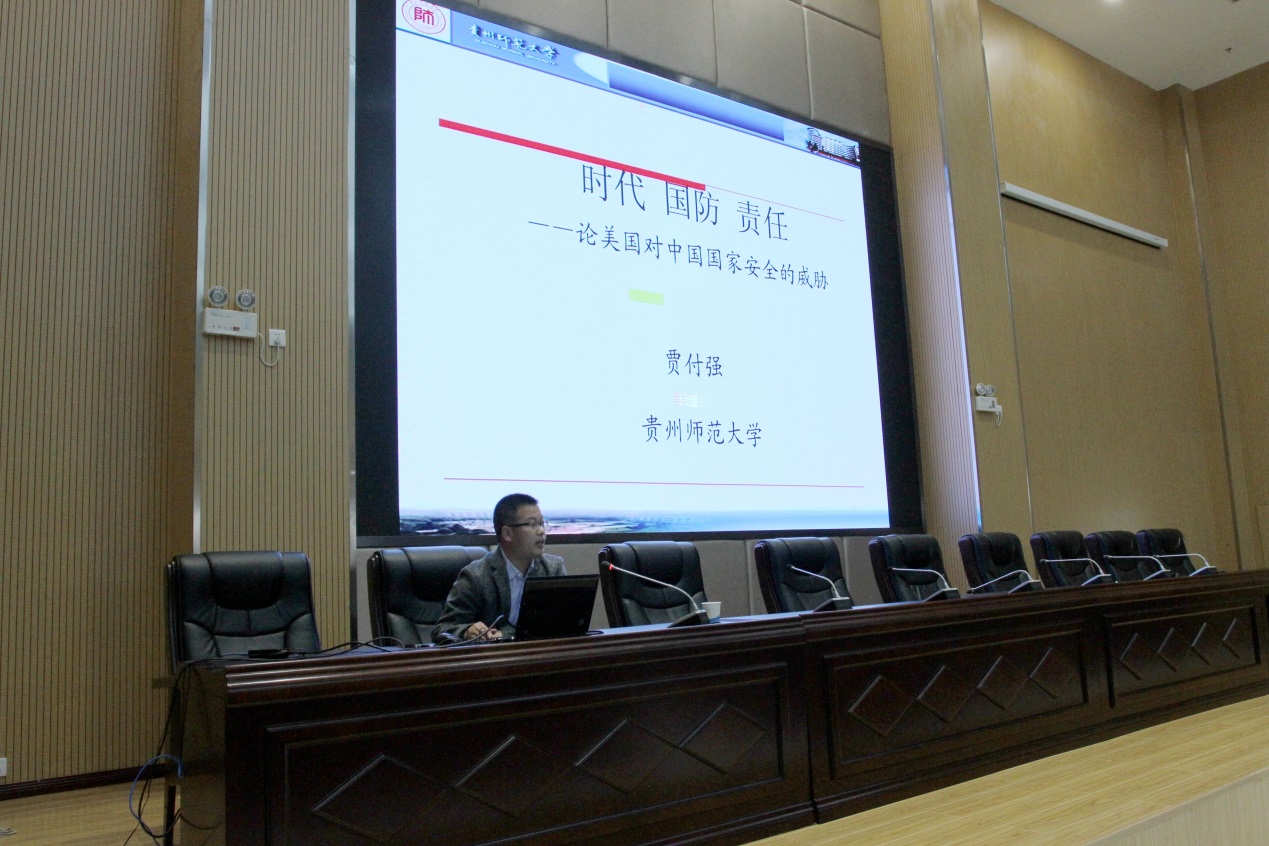 5月22日,“新时代学习大讲堂”第三期在清镇校区通途讲堂开讲,贵州师范大学历史与政治学院教授、博士生导师,上海高校智库复旦大学宗教与中国国家安全研究中心兼职研究员,察哈尔学会研究员贾付强为全体党员带来了一场精彩的国防专题讲座。