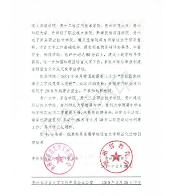 日前,贵州省语言文字工作委员会、贵州省教育厅公布了第一批高校及省属学校语言文字规范化达标创建结果,我院顺利通过达标创建。