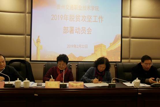 会议传达学习了省交通运输厅2019年脱贫攻坚工作会议精神,听取了2019年驻村帮扶队员鲁熙、冀晓东、赵林林作的关于2018年工作开展情况及2019年工作计划的汇报。学院各帮扶单位就2019年脱贫攻坚工作计划作交流发言并与学院签订了2019年脱贫攻坚目标责任书。