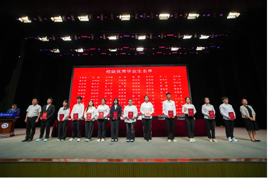 在2024届毕业学子中,涌现出一批品德高尚、学识优秀、全面发展的学生。詹黔江副院长宣读了2024届优秀毕业生的表彰决定,校领导为优秀毕业生代表颁发荣誉证书并合影留念。
