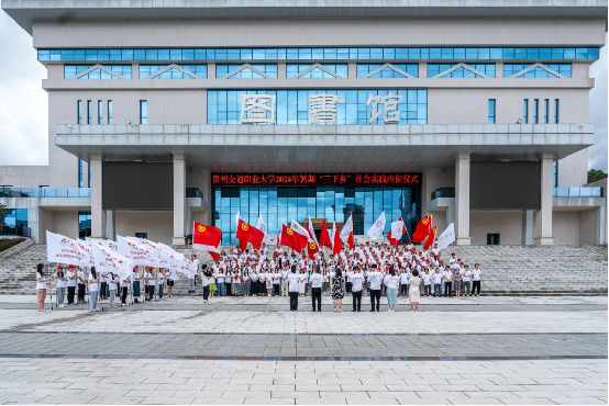 7月5日,贵州交通职业大学2024年大学生暑期“三下乡”社会实践活动启动仪式在通途广场举行,副院长詹黔江出席并宣布出征。团委、党办、党委宣传部、学生处、马教部相关负责人、各系团总支书记(负责人)及实践师生200余人参加出征仪式。
