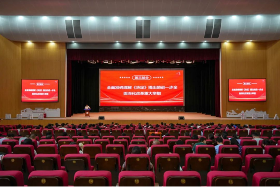 王昌林从深刻认识党的二十届三中全会的历史意义、深入学习领会习近平总书记在党的二十届三中全会上的重要讲话精神、全面准确理解《决定》提出的进一步全面深化改革重大举措、全力以赴抓好全会精神贯彻落实四个方面进行了深入阐释。