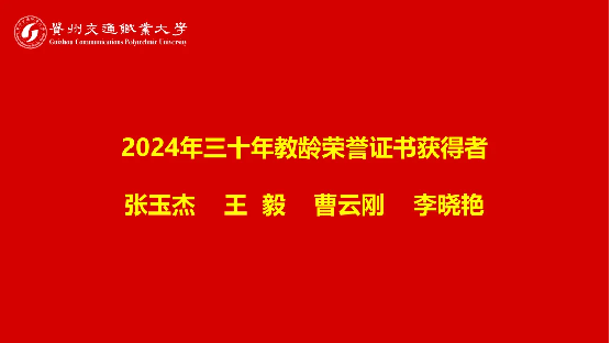 三十年教龄教师代表张玉杰以“经历、见证、期待”三个关键词总结了从教31年的经历和感悟:有幸经历了与一堆想做事能做事的人在一起工作和学习;见证了学校师生的努力,更见证了学校师生让学校成为一所高水平职业大学建立起来的信心;对于明天大家共有的事业,期待交职大教师不负使命,共创辉煌!
