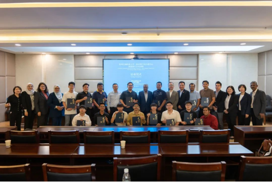 会后,西华尼申与叶森受邀参加我校举办的马来西亚新能源汽车培训班结业仪式,与王昌林一同为15名国际学生颁发结业证书。