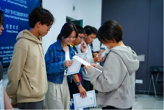 近日,2024“知行贵州”丝绸之路青年交流计划交通黔行——讲好“贵州交通故事”研学活动结营仪式在我校举行,来自新加坡南洋理工学院的研学青年们通过在贵州安顺、晴隆、兴义等地研学,深刻感悟贵州交通发展历程、建设成就以及贵州独特的民族文化。