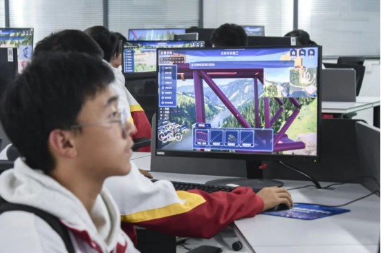 图三:同学们体验“数字建桥虚拟仿真”课程