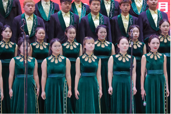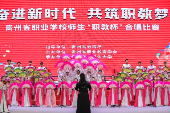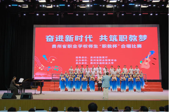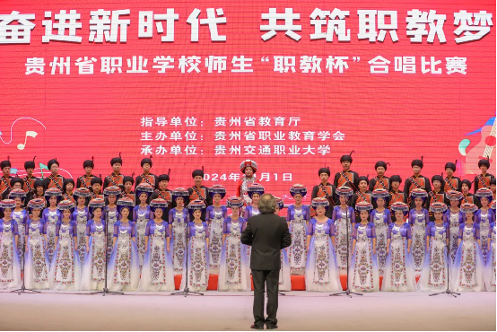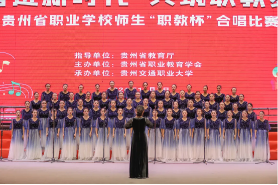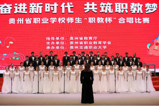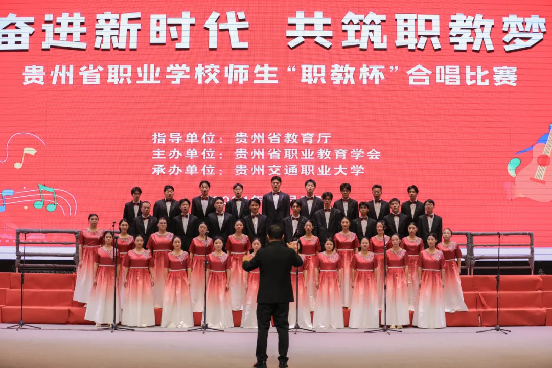 本次比赛由贵州省教育厅指导、贵州省职业教育学会主办、贵州交通职业大学承办,来自全省职业院校的18支队伍、1000余名师生齐聚一堂,以铿锵有力、嘹亮动人的歌声,歌颂伟大祖国,吟唱难忘岁月,展望美好征程。