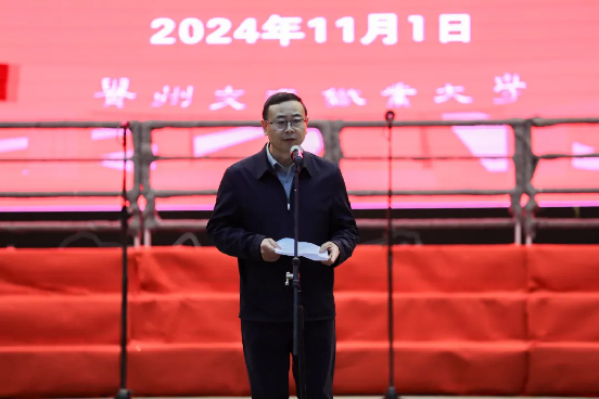 学院党委书记王昌林致欢迎辞,他表示,举办“职教杯”全省职业院校师生合唱比赛,既是全面贯彻落实党的教育方针、落实立德树人根本任务的需要,是落实贵州省“四大文化工程”、开展师生美育教育的重要举措,也为激发全省职教师生的爱国热情和创造力、展示职业教育的成就和未来发展的无限可能提供了重要平台和契机。让我们以此次“职教杯”师生合唱比赛为契机,凝聚新时代职教力量,共同谱写新时代贵州职业教育新篇章。