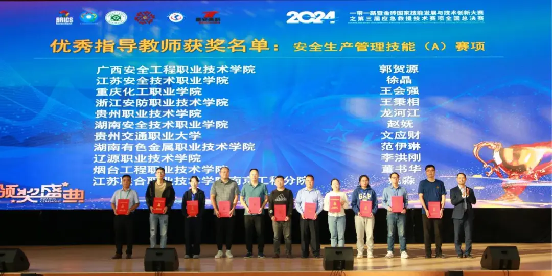在路桥工程系文应财、梁爱平两位教师的共同指导下,路桥工程系安全技术与管理专业23级学生朱丹以97.41分的优异成绩荣获安全生产管理技能赛项(A赛项)二等奖;安全技术与管理专业23级学生石仁辉、杨光刚、兰成阳组成的团队以500.9分的佳绩斩获应急救援技能赛项(B赛项)三等奖。文应财老师荣获安全生产管理技能赛项(A赛项)“优秀指导老师”称号,贵州交通职业大学荣获“优秀组织奖”。