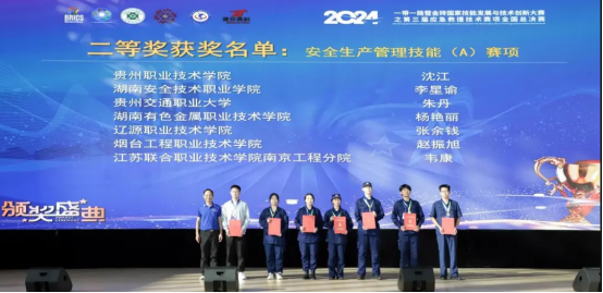 图1 安全技术与管理专业23级学生朱丹(右四)荣获安全生产管理技能赛项(A赛项)二等奖