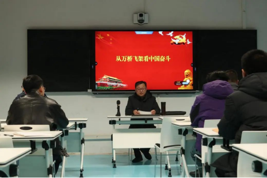 詹黔江以“从万桥飞架看中国奋斗”为题,为全体党员教师及入党积极分子、学生代表等开展了一堂精彩的思政课。他以桥梁建设为切入点,结合贵州桥梁的发展和成就,引导师生们深刻理解不畏艰难、勇于创新的伟大品质。