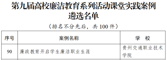 近日,教育部公布第九届高校廉洁教育系列活动结果,我校《廉政教育开启学生廉洁职业生涯》案例入选课堂实践案例。