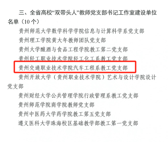 近日,省委教育工委公布了“全省高校党建工作样板支部建设单位”“全省高校党建‘双带头人’”培育工程建设单位验收通过名单,我校汽车工程系教工党支部、轨道工程系教工学生党支部顺利通过验收。