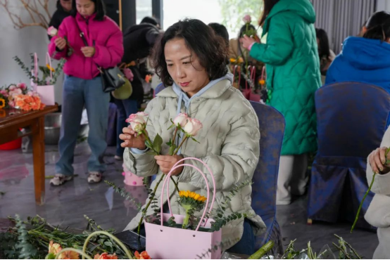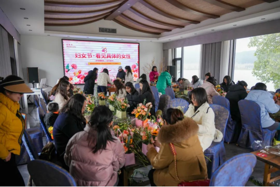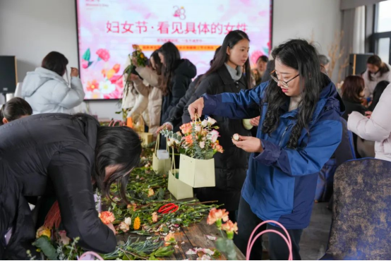 活动内容丰富多彩,包括创意签到、场景游戏和插花艺术等环节。在“木头人”游戏中,参与者需在特定口令下保持不动,展现了敏捷与智慧。随后的套圈游戏让女职工们在轻松愉快的氛围中赢得了精美礼品。插花活动中,专业花艺师的指导让大家亲手创作了美丽的插花作品,展现了女性的巧思与创造力。