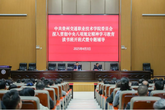 4月3日,中共贵州交通职业技术学院委员会深入贯彻中央八项规定精神学习教育读书班开班。学院党委书记王昌林主持开班式并讲话,省纪委省监委派驻省交通运输厅纪检监察组副厅长级专职纪检监察员、副组长王剑波作专题辅导。