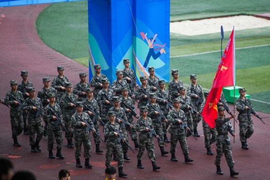 入场仪式上,国旗队、校旗队、会旗队、会徽队、标语队、表演方队、教职工代表队、裁判员代表队、新征连学生代表队、国际教育部留学生代表队、各系部代表队迈着整齐的步伐、喊着响亮的口号依次入场。开幕式在庄严的升旗仪式中拉开帷幕。