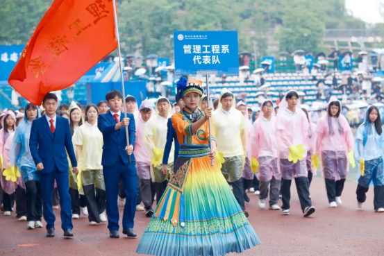副院长詹黔江致辞,他表示,本次运动会是学校一年一度的体育盛事,也是学校更名升格后的第一届体育健康运动会,内容十分丰富,适宜群体广泛,活动意义重大。他分享了三个方面与大家共勉:一是以赛铸魂,弘扬体育精神。希望大家在一场又一场的竞技比赛、一次又一次的意志砥砺中,培养团队精神、竞争意识和坚强毅力。二是以赛促练,提升竞技水平。鼓励大家多去参加各类大赛,把贵州交职大的名片在竞技赛场上擦亮。三是以赛健身,拥抱强健体魄。希望以运动会为牵引,通过增设更加丰富的体育选修课程、增加运动场所等方式,引导大家业余时间到运动场上来,助力每位师生锻造强健体魄,为终身发展奠定坚实基础。