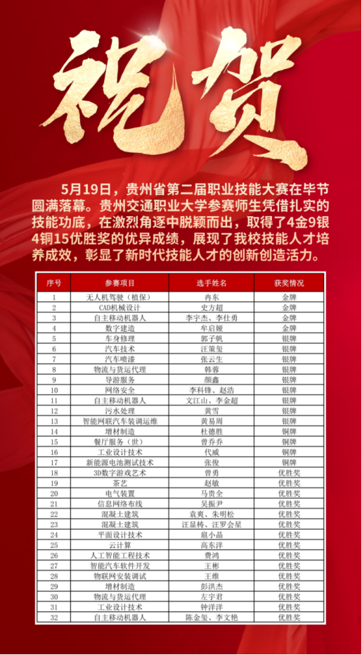 祝贺!4金9银4铜15优胜奖!