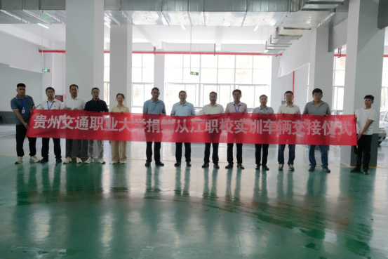 在从江县职业技术学校,王昌林一行与从江职校负责同志就省级优质专业申报、实训室建设以及技能大赛备赛等问题进行了深入交流,实地调研了汽车实训室建设情况并举行实训车辆捐赠仪式。