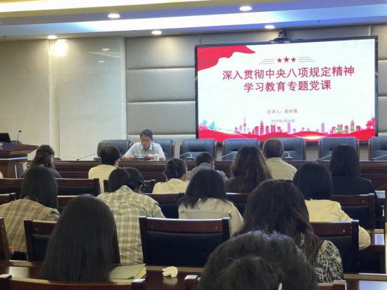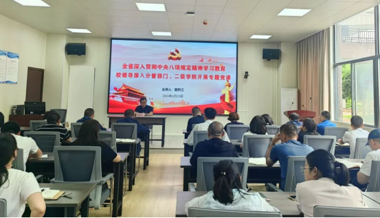 学校各基层党支部书记认真履行主体责任,通过“三会一课”、主题党日活动等形式,为所在支部上专题党课,实现党员教育全覆盖,推动中央八项规定精神入脑入心。