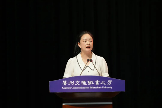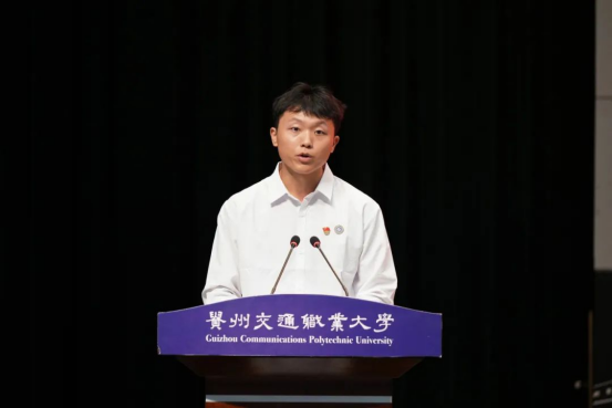 毕业生代表张庭鹏同学深情回顾了与母校共同成长的难忘岁月,分享了求学路上的收获与荣光。他代表全体2025届毕业生,向精心编织这场青春纪念仪式的母校表达了最深挚的感谢,誓言将永远铭记母校的培育之恩和师长的谆谆教诲,带着贵州交大人的烙印勇敢前行。