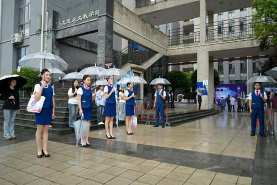 开幕式以学校原创歌舞《黔路通途》拉开序幕,诠释“所爱隔山海,山海皆可平”的豪迈情怀。空中乘务专业学生通过职业风采秀,展现“空乘礼仪、服务美学、安全素养”三位一体的专业能力。管理工程系的师生们打破静态展览的桎梏,让陶轮转动的韵律与歌舞节奏共振共鸣,使酒店场景的实景体验与数字视觉的光影交相辉映,将空乘礼仪的优雅风范与在地文旅的策划熔铸成璧。师生们把艺术思维注入旅游体验的脉络,以文化基因融入职业素养的根基,“艺旅相融”推动人才培养迈入跨界共生的新境界。