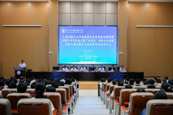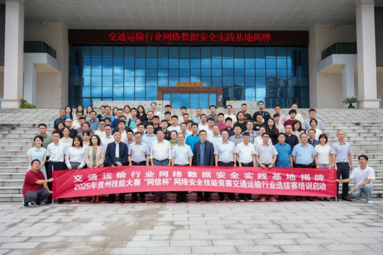 7月3日,交通运输行业网络数据安全实践基地揭牌暨2025年贵州省交通运输行业“网信杯”网络安全技能竞赛培训启动仪式在贵州交通职业大学举行,贵州交通职业大学党委副书记、校长刘雁,贵州省交通运输厅原二级巡视员、交通运输行业网络数据安全工程研究中心负责人康厚荣,贵州高速公路集团有限公司总工程师石大为,贵州交通投资集团有限公司党委委员、副总经理韩洪举,贵州省公路局大数据服务中心党委书记熊尤刚,贵州省交通运输厅科技处三级调研员钟志坚,深信服科技有限公司交通事业部副总经理魏彬,贵州交通信息与应急指挥中心党委委员、副主任邝帆,贵州省交通运输综合行政执法技术和信息保障中心党委委员、副主任张欢,贵州省交通规划勘察设计研究院股份有限公司工程数智中心主任杜镔出席。贵州交通职业大学党委委员、副校长詹黔江主持仪式。