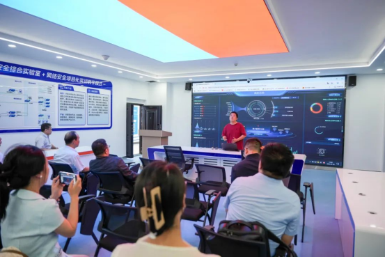 刘雁致欢迎辞。他表示,交通运输行业网络数据安全实践基地为师生开展行业网络数据安全应用研究和实践搭建了优质平台,这不仅是政行企校携手共育人才的里程碑,更是协同服务行业高质量发展的新实践,意义重大、影响深远。随后,康厚荣、钟志坚先后致辞,实践基地教师代表王磊发言,与会领导共同为实践基地揭牌并参观了实践基地。