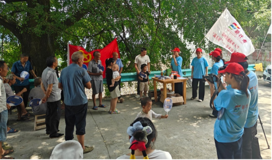 依托村中百年银杏树,队员们以“一树、一扇、一堂课”的创新模式,开展反诈防骗、防火保家、防溺水、交通安全等宣讲,他们通过组织村里老人、儿童集中宣讲、发放定制反诈手扇、开展趣味知识问答等形式,为“一老一小”群体筑牢双重安全屏障。