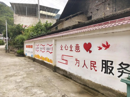 满天星“春泥圆梦”志愿服务队队员们拿起画笔,将时事政策、红色文化、乡土风情等元素融入墙绘之中,让一面面原本单调的墙壁变得生动有趣,成为了乡村一道靓丽的风景线。