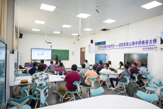 在学校智慧教室中,路桥工程学院正高级工程师石连富以《多彩贵州—从万桥飞架看中国奋斗》为题给研修班学员带来了一场专题授课。课程以贵州“万桥飞架”的震撼成就为切入点,系统解读中国交通建设的奋斗历程与发展智慧,内容丰富、案例生动,引起了学员的热烈讨论。