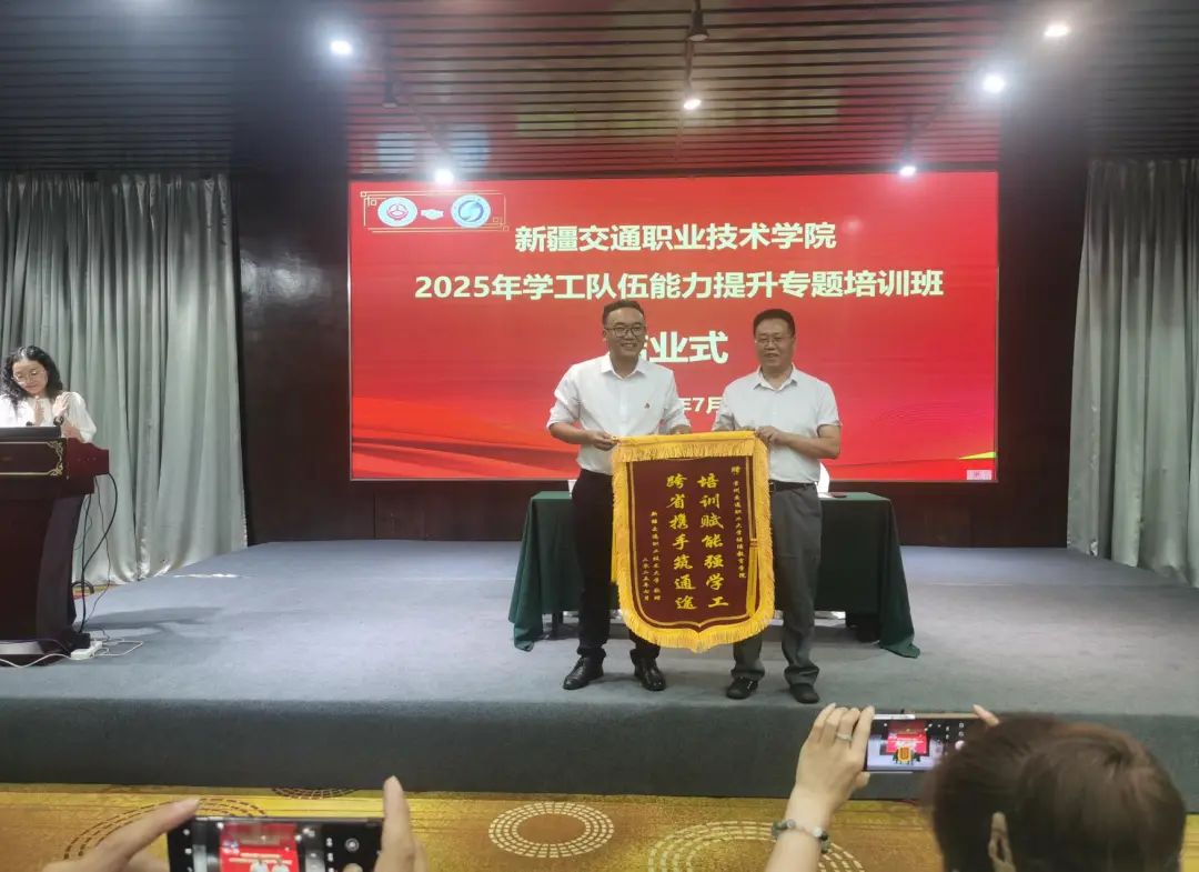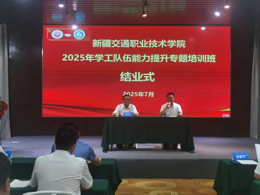 7月23日,为期7天的新疆交通职业技术学院2025年学工队伍能力提升培训班圆满落幕。新疆交通职业技术学院党委委员、副院长李大严和40位参训学员参加结业式。