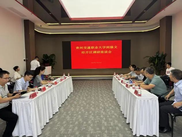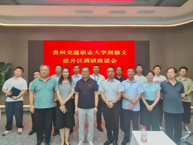 为深化校企合作内涵,促进人才培养与产业需求紧密对接,7月23日,贵州交通职业大学副校长詹黔江率队前往修文经开区开展实地调研与座谈交流,校企合作处副处长王毅、招生就业处副处长赵祥全及相关教师参加活动。