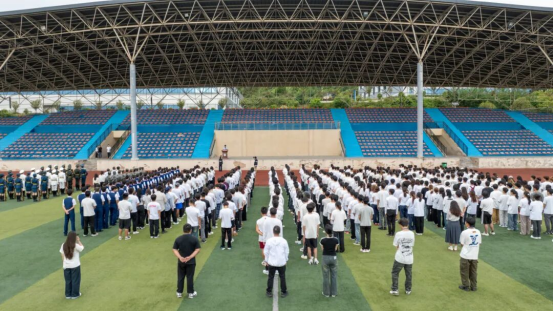 9月3日清晨,学校在润园运动场举行升旗仪式暨“国旗下的思政课”。校党委书记何兴发出席并讲授思政课,各学院2024级学生代表及新征连成员参加仪式。