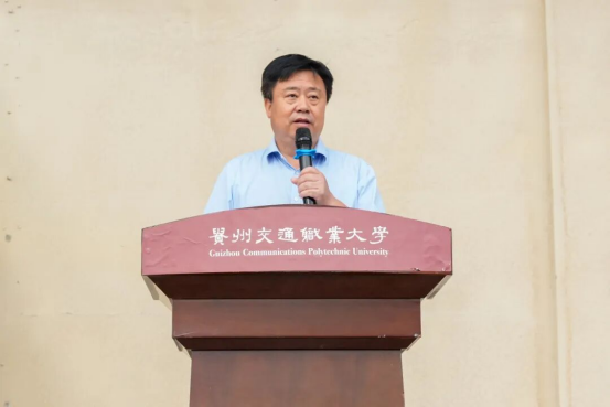 党委书记何兴发以《赓续伟大抗战精神 激扬青春奋进伟力》为题讲授思政课。带领师生回顾了八十年前那段波澜壮阔、艰苦卓绝的烽火岁月,讲述了交通生命线在抗战中的非凡意义和贵州作为抗战大后方的历史贡献。贵州从昔日的“抗战生命线”到今日的“交通大动脉”,是党和国家事业发展的生动缩影。在这部波澜壮阔的“贵州交通史诗”中,10余万贵州交职大学子在崇山峻岭间赓续“山硬不如骨头硬 岭高不如志气高”的精神气概,将智慧和汗水挥洒在贵州交通建设的每一个工地、每一条线路、每一座桥隧,为母校赢得了“贵州交通人才摇篮”的美誉。在即将建成通车的“世界第一高、山区第一跨”大桥——花江峡谷大桥所属项目中,200余名贵州交职大毕业生参与建设,30余名技术骨干深耕大桥设计、施工、管理等关键环节,为这个“横竖”都是世界第一的超级工程贡献了“贵州交职大力量”。我们要把这种精神力量继续传承和发扬下去,以“开路先锋”的锐气、“精益求精”的匠心、“甘为路石”的奉献、“创新引领”的追求,砥砺奋斗之志,在强国复兴征程中勇担重任。