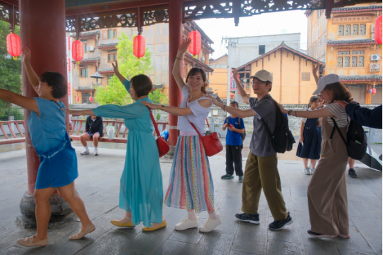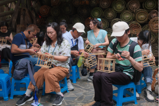 在学校交旅融合协同创新中心文化千岛艺术馆、贵州三宝侗寨、卡拉苗寨等地,台湾青年沉浸式体验苗族蜡染、侗族大歌、鸟笼竹编等非物质文化遗产,亲手制作传统工艺品,与非遗传承人面对面交流。一场《屯堡长歌》实景演出,更让台湾青年感受到贵州民族文化的深厚底蕴与鲜活生命力。