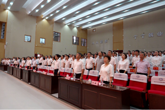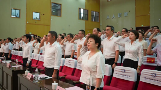 会上,刘雁带领全体教师重温教师誓词。全体教师庄严宣誓,忠诚党的教育事业,贯彻国家教育方针,履行教师神圣职责。