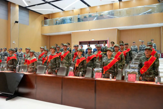 大会最后,全体入伍新兵起立合唱《强军战歌》,歌声嘹亮、气势昂扬,展现了新兵们投身国防、建功军营的坚定决心和豪情壮志。