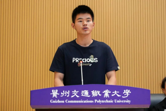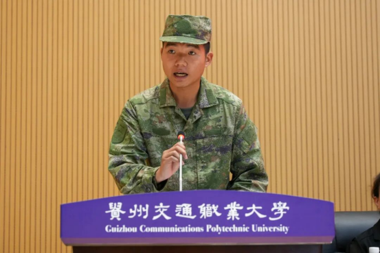 退役士兵代表杨军飞同学分享了自己从军经历和重返校园的感悟。他表示将把部队培养的纪律意识、责任担当和坚韧精神融入学业和生活中,用实际行动展现"退伍不褪色"的军人风采。