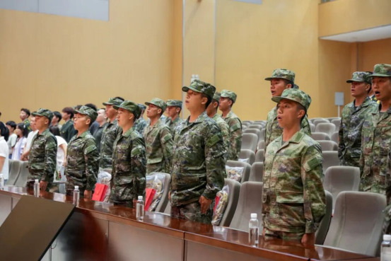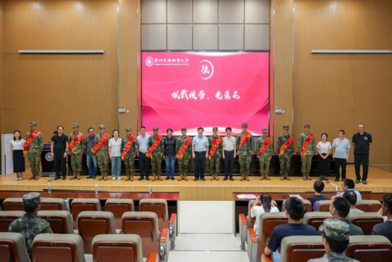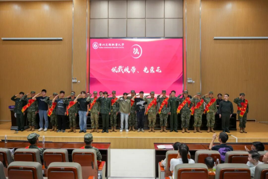 何兴发代表学校党委向光荣入伍的新兵表示热烈祝贺,向退役返校士兵致以崇高敬意。他勉励新兵同学们要坚定信念、刻苦训练、严守纪律、勤奋学习,争做有灵魂、有本事、有血性、有品德的新时代革命军人;同时对退役士兵重返校园表示欢迎,希望他们以热忱毅力投入学习,发挥模范作用促学风,助力学校国防教育与征兵工作,激发更多同学爱国参军热情。