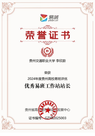 优秀易班工作站证书、优秀易班工作站站长荣誉证书