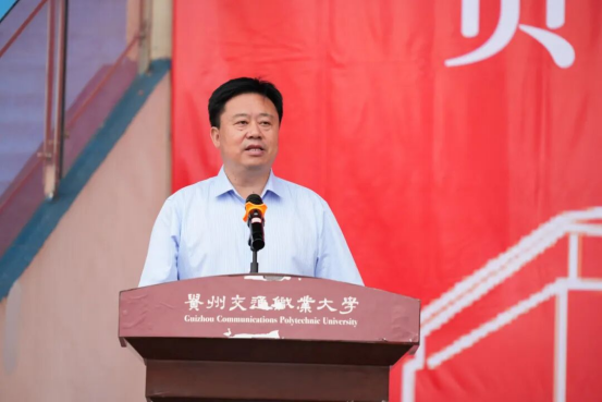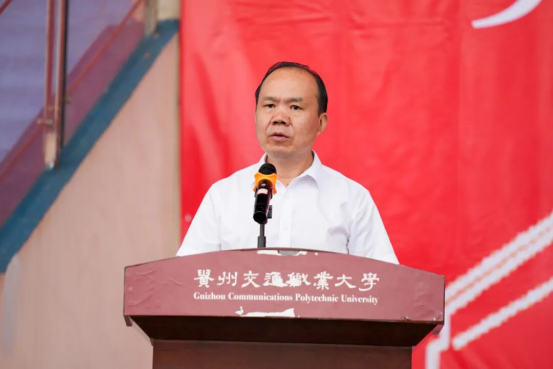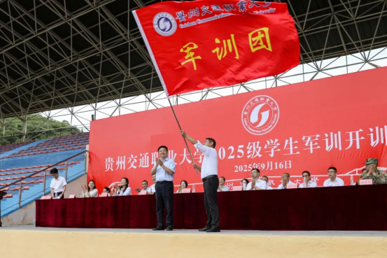 迷彩青春正当时,逐梦通途启新程。9月16日上午,贵州交通职业大学2025级学生军训开训暨动员大会在学校润园运动场举行。学校党委书记何兴发出席大会,向军训团授旗并宣布开训。学校党委副书记、校长刘雁等在家校领导,清镇市人民武装部参谋(军训教官总指挥)韩昌毕出席大会。大会由党委副书记杨再豪主持。