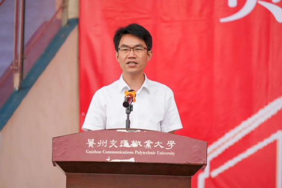 副校长田兴强宣读《贵州交通职业大学2025级学生军训团组织机构名单及任命》