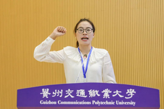 在全场的见证下,裁判员代表王芳与参赛选手代表、贵州交通职业大学学生陈先忆分别登台宣誓。裁判员代表承诺将严格遵守赛事规则,秉持公平、公正、公开的原则执裁;参赛选手代表则表示将以最佳竞技状态投入比赛,严格遵守赛场纪律,赛出水平、赛出风格。