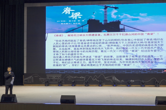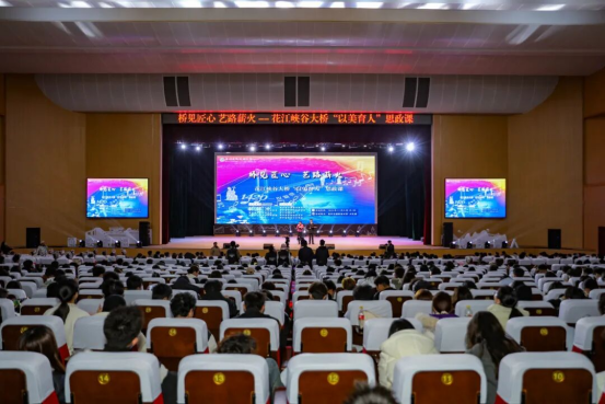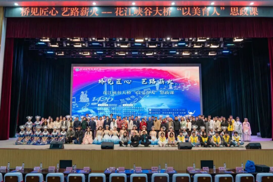 11月5日晚,桥见匠心 艺路薪火——花江峡谷大桥“以美育人”思政课在学校礼堂举办。活动为「遇·见」当音乐与美术相遇——贵州交通职业大学场馆育人校园文化活动暨2025香港城市艺术博览会贵州预展的重要组成部分。思政课以花江峡谷大桥为载体,为师生带来了一堂富有温度与深度的美育实践。