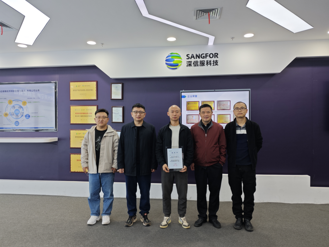 近日,交通运输行业网络数据安全工程研究中心团队赴深信服科技股份有限公司调研交流,并现场获授 “贵州区域交通运输行业安全运营服务资质(高级)”授权书。